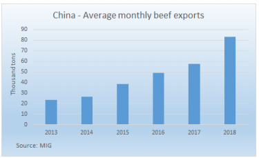 2018年牛肉出口總值歷史最高