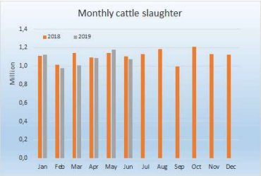 2018/19年活牛出口量減少19萬頭