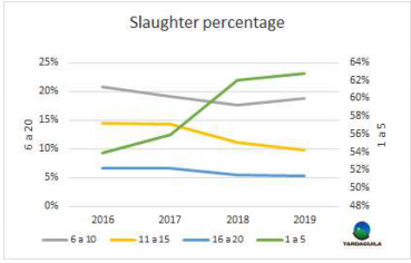 另一輪育肥牛供應(yīng)短缺開始,屠宰量似乎在向大型公司集中,過去三年里,最大的五家公司屠宰量占比越來越重,2016年前五家公司屠宰量占總量53.9%,由于屠宰行業(yè)利潤率進(jìn)一步緊縮,2017-2019年上半年占比一直在增長,目前已經(jīng)達(dá)到62.8%。而6-10位的屠宰公司屠宰占比減少了兩個點到18.8%,11-15位的屠宰公司從2016年占比14.5%降到目前的9.9%,其中有一家屠宰廠由于沒有中國證而停產(chǎn),中國市場是目前出價最高而且最為重要的市場。