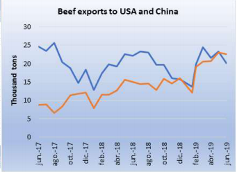 2019/20農(nóng)業(yè)年前兩周阿根廷工廠已經(jīng)發(fā)運了1847噸希爾頓牛肉,比巴拉圭全年發(fā)運的量還多一倍,也達(dá)到了烏拉圭配額量的30%,不過還需要觀察在國際價格下跌、對美元匯率貶值以及本地消費減少的情況下市場會如何發(fā)展。
