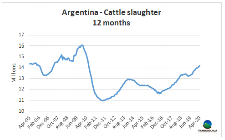 盡管受到隔離令的影響,4月阿根廷牛只屠宰量118萬頭,較3月增長8.7%。今年前4個月阿根廷牛只屠宰量達(dá)442萬頭,比去年同期增長5.2%。4月巴西美麗華集團(tuán)的Swift廠屠宰量排在首位,在2020年屠宰量排名中超過阿根廷連鎖超市集團(tuán)COTO重新成為排在第一位,COTO排在第二位。Rioplatense,Arrebeef和Gorina位列其次,分別排在第三第四和第五位。由于至中國貿(mào)易量下降隨后又恢復(fù),母牛屠宰量占48.6%,與3月屠宰量相比有所提高。