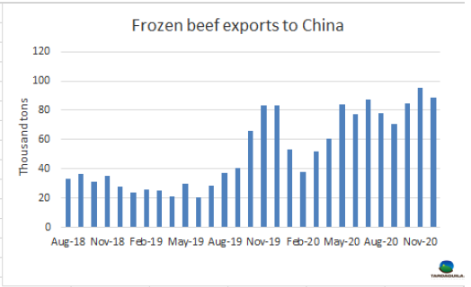 2020年第四季度烏拉圭牛肉進口量下降了28%
