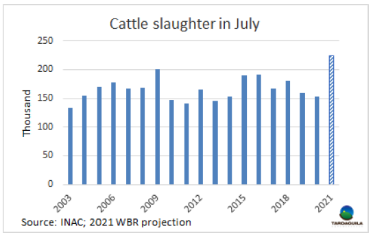 今年7月的牛屠宰量將達(dá)歷年7月最高