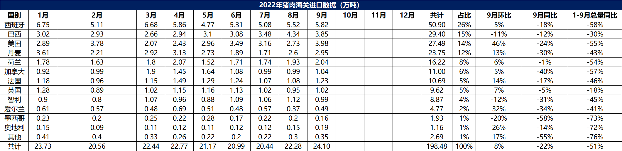 2022年1-9月冷凍豬肉進(jìn)口數(shù)據(jù)