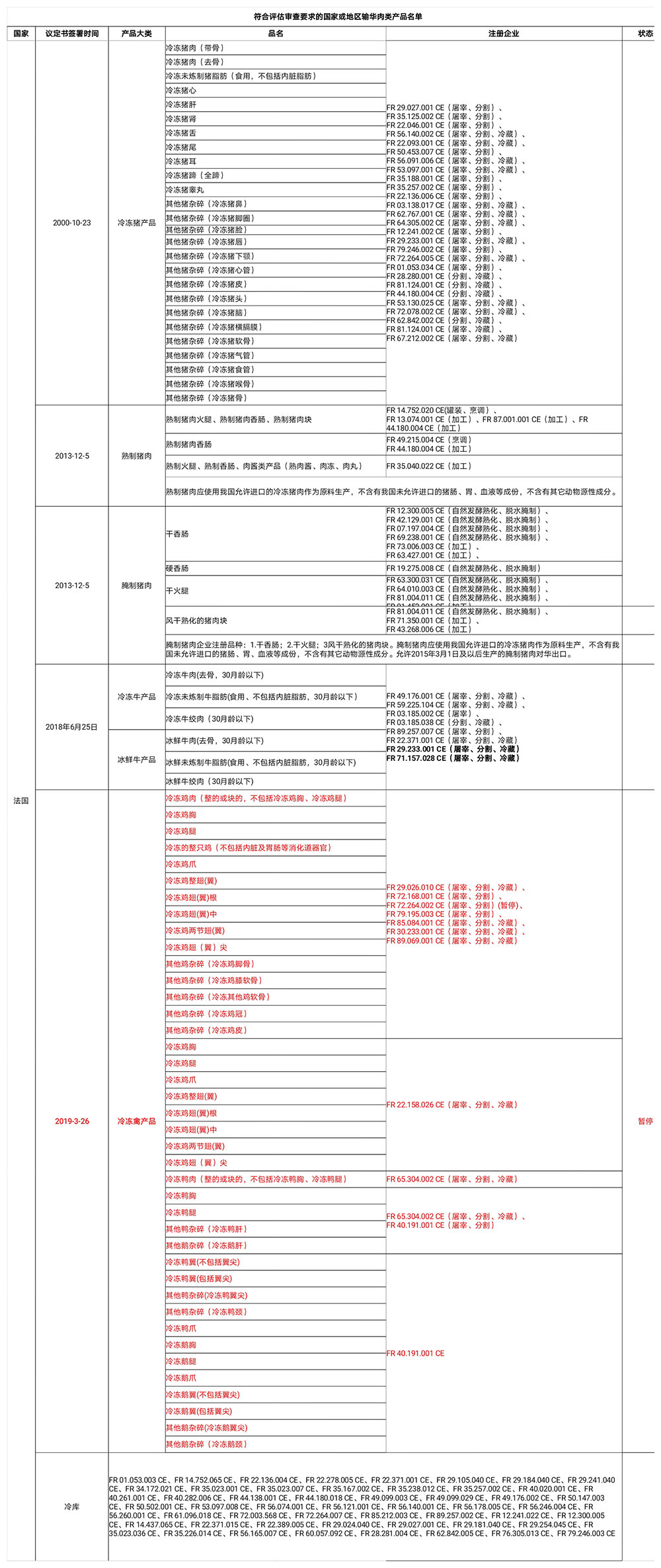 FR 01.452.001 CE等14家企業(yè)自2023年3月28日起啟運(yùn)的輸華豬肉產(chǎn)品進(jìn)口申報(bào)。