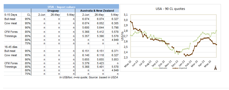 在烏拉圭和巴拉圭,價格趨勢是向下跌的,與低迷的國際環(huán)境一致。烏拉圭的閹公牛價格下降了3美分-4美元每公斤。