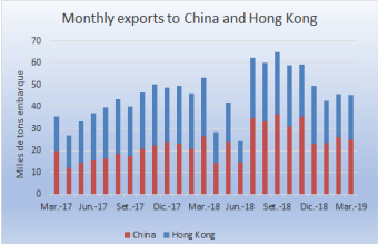 水漂貨從香港進(jìn)入中國很困難,影響到了今年第一季度巴西對香港的出口,雖然出口中國的量增加了6%,但并不足夠彌補(bǔ)香港份額25%的減少,香港第一季度只進(jìn)口了13.33萬噸,同比減少1.5萬噸。減少的這部分量被中國從澳洲、烏拉圭和阿根廷直接進(jìn)口的量所替代。