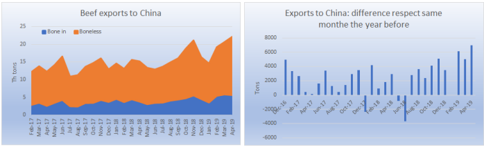由于非洲豬瘟影響,中國(guó)市場(chǎng)需求增長(zhǎng)迅速,價(jià)格大幅上漲,有中國(guó)證和猶太市場(chǎng)許可的廠家都更愿意出口到中國(guó),因?yàn)橐陨袑?duì)牛只和屠宰的要求太高,而且中國(guó)價(jià)格一直在漲。為猶太市場(chǎng)屠宰會(huì)導(dǎo)致每天屠宰量減少15%,相對(duì)中國(guó)市場(chǎng)來(lái)說(shuō)是很大的成本。