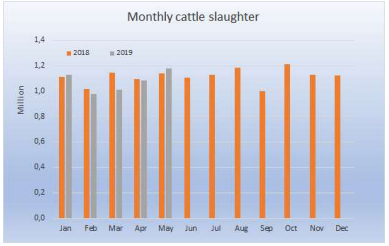 五月屠宰量今年至今最高,達到118萬頭,也比去年五月高,不過前五個月總屠宰量537萬頭,還是同比減少了2%。