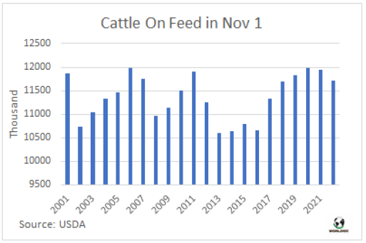 11月育肥牛在養(yǎng)數(shù)量下降了2%
