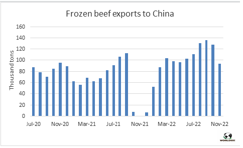 11月巴西對(duì)中國(guó)牛肉出口量和出口均價(jià)急劇下降