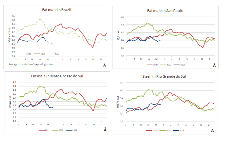 上周,由于市場并不活躍,巴西主要市場的成品閹牛價格下跌。
