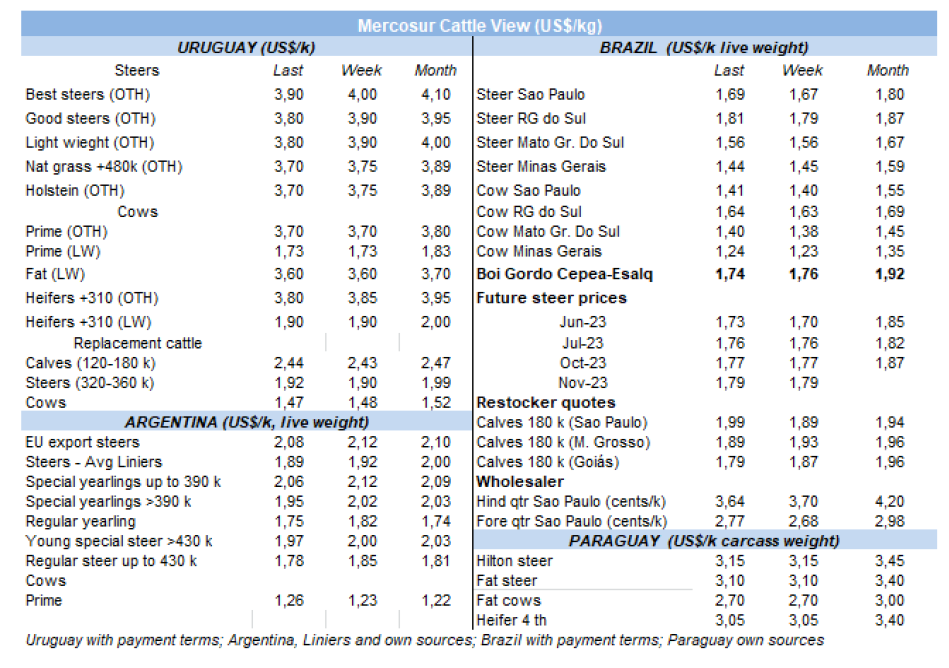 在該地區(qū)唯一一個價格沒有下降的國家是巴拉圭,那里的屠宰牛仍為$3.10/公斤。