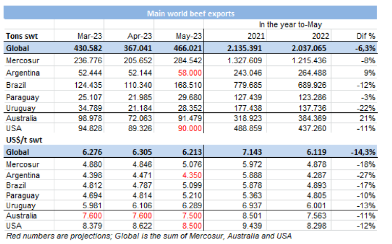 5月份全球?qū)θA牛肉出口量強(qiáng)勁增長