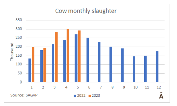 母牛屠宰量繼續(xù)增長,但與4月份相比有所下降