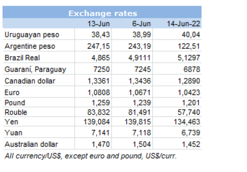 市場價格持續(xù)下跌。一位貿(mào)易商舉了一個例子,烏拉圭當(dāng)時以$5500的CFR價格出售,兩天后每噸下降了$500,而本周的出價是$4800。在付款時要格外小心,因?yàn)檫M(jìn)口商損失是巨大的,庫存的產(chǎn)品價值比目前的市場價要高得多。