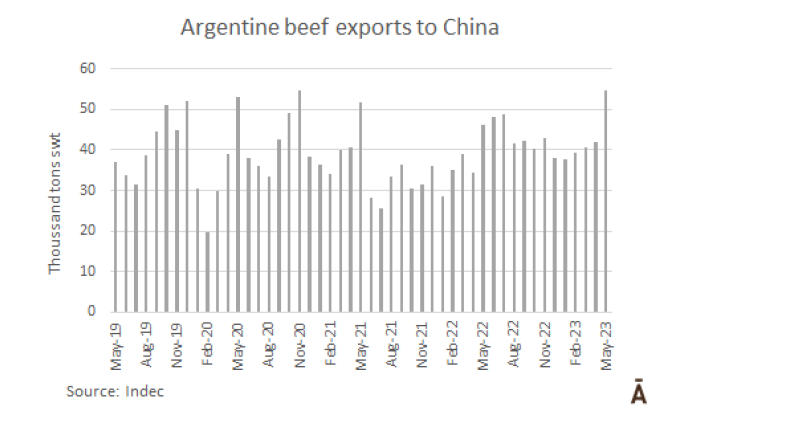 據(jù)報(bào)道,5月份冰鮮和冷凍牛肉的出口量達(dá)到近65,100噸,比上個(gè)月多出22.4%,比2022年5月多出13.1%,是自2020年11月以來的42個(gè)月最大月出口量。