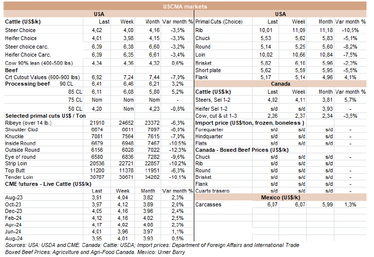 牛屠宰市場擺脫了5、6月期間普遍存在的劇烈下跌趨勢,上周一些特殊產(chǎn)品因為沒有達(dá)到理想的價格而成交。