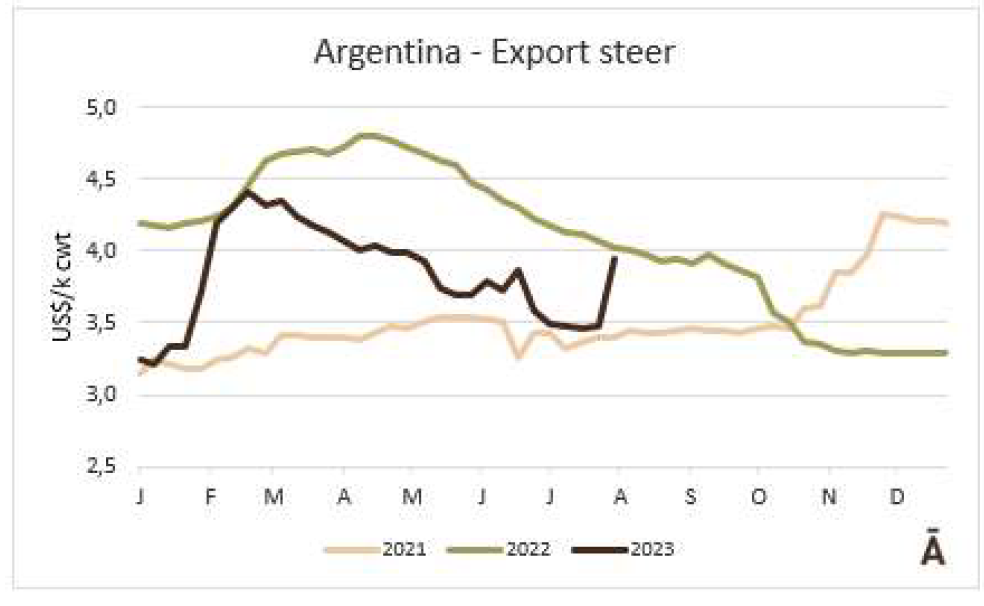 一位貿(mào)易商預(yù)測(cè),由于進(jìn)入飼養(yǎng)場(chǎng)的牛數(shù)量減少,導(dǎo)致阿根廷工業(yè)屠宰量減少,2023年下半年南方共同市場(chǎng)國(guó)家出口到中國(guó)的牛肉供應(yīng)量將減少。