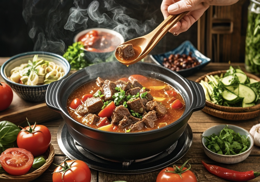 廣式清湯牛腩火鍋以其清淡鮮美而著稱。清澈的湯底,用牛骨和拍姜、香葉、玉竹、陳皮、炒香的胡椒等各種香料熬制而成。牛腩在清湯中煮至軟爛,保留了牛肉的原汁原味,可加入大塊蘿卜。吃的時候,可以蘸上特制的沙茶醬、海鮮醬或腐乳蘸料等,口感更加豐富。廣式清湯牛腩火鍋注重食材的新鮮和品質(zhì),通常會搭配上各種海鮮、肉丸、蔬菜等,鮮美溫補。
