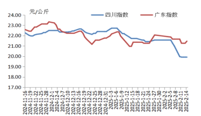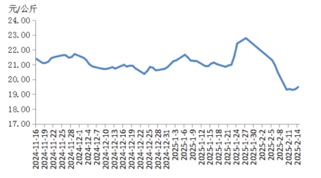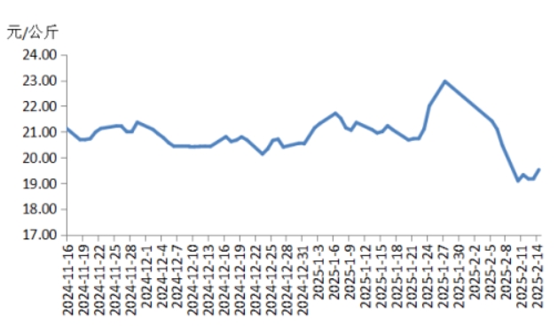 本周華中地區(qū)豬肉價(jià)格環(huán)比明顯下跌,周內(nèi)價(jià)格先跌后漲。前半周,規(guī)模養(yǎng)殖場的生豬出欄量增加,散養(yǎng)戶將春節(jié)節(jié)前壓欄豬源陸續(xù)釋放,使得生豬及豬肉供應(yīng)充沛,而豬肉消費(fèi)表現(xiàn)一般,元宵節(jié)提振力度較弱,致使屠宰企業(yè)訂單銷售速度不快,豬肉價(jià)格明顯下跌。后半周,各院校開學(xué)后食堂訂單小幅增多,經(jīng)銷商采購積極性增加,帶動(dòng)豬肉價(jià)格有所反彈,幅度有限??傮w看,本周華中地區(qū)豬肉周均價(jià)明顯低于上周。