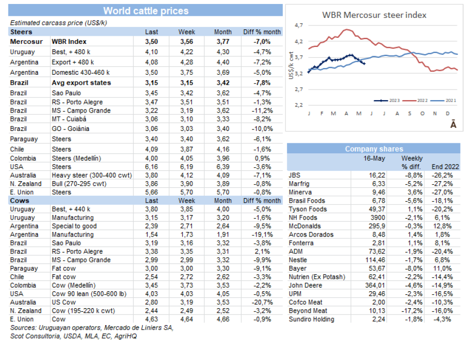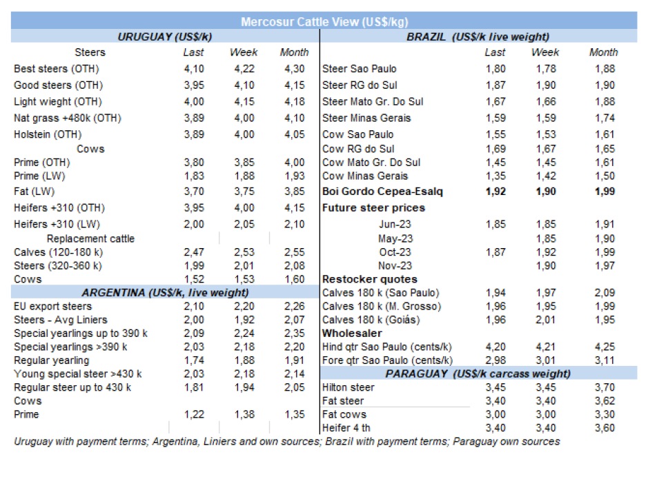巴西牛的平均出口價(jià)格保持在每公斤3.15美元。同時(shí),在烏拉圭和阿根廷市場(chǎng),雷亞爾的價(jià)格有所下降,而巴拉圭的價(jià)格保持穩(wěn)定。