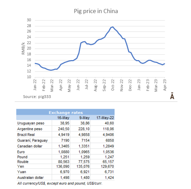 在2023年第一季度,生產(chǎn)了190萬(wàn)噸胴體重量,與前一年同季度相比增加了3%,但與2022年第四季度相比下降了6.5%。
