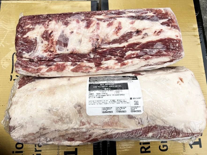 作為阿根廷技術(shù)最先進(jìn)的屠宰場(chǎng),1920廠的自動(dòng)化程度非常高,選取牛齡不超過2歲的小閹牛(95%都是黑安格斯牛),屠宰后的牛胴體經(jīng)過機(jī)器自動(dòng)拍照分級(jí),根據(jù)級(jí)別貼上不同標(biāo)簽,靜置24至48小時(shí),待溫度達(dá)到4-7℃開始分割,分前中后三條分割線分割,包裝好的牛肉通過傳送帶自動(dòng)分類,速凍48小時(shí)左右,然后傳送到冷庫。出庫時(shí)由機(jī)器把紙箱自動(dòng)堆放到托盤上,纏繞裹膜后裝入集裝箱。工廠70%的產(chǎn)能用于出口,其中70%出口到中國(guó),其他出口地為歐盟、中東地區(qū)、美國(guó)等。