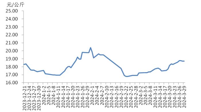 本周,四川豬肉周均價(jià)為每公斤19.24元,環(huán)比上漲1.5%,同比上漲5.9%,同比漲幅擴(kuò)大3.7個(gè)百分點(diǎn)。周前期,川內(nèi)散養(yǎng)戶出欄生豬的節(jié)奏較穩(wěn)定,但豬源外調(diào)出川的數(shù)量增多,使得川內(nèi)生豬及豬肉供應(yīng)偏緊,疊加豬肉經(jīng)銷商積極采購(gòu),推動(dòng)豬肉價(jià)格上漲。周后期,消費(fèi)市場(chǎng)對(duì)高價(jià)豬肉需求量減少,客戶訂單量減少,豬肉價(jià)格小幅回落??傮w看,本周四川地區(qū)豬肉周均價(jià)環(huán)比小幅上漲。