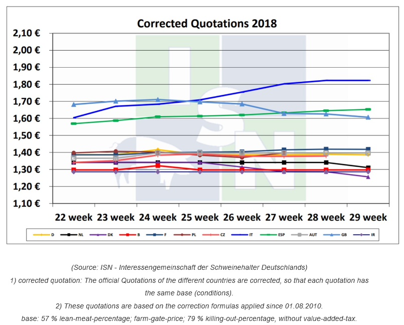 隨著大量游客蜂擁至歐洲南部國家,這些地方的夏季燒烤正如火如荼。因此,肉類需求依然維持在高位。西班牙生豬價(jià)格小幅上漲。與過去數(shù)周相比,歐洲其他國家的生豬價(jià)格變化不大,幾乎沒有變。隨著氣溫繼續(xù)變暖,待宰豬數(shù)量保持低位,屠宰量下降,胴體體重同樣減輕。奧地利上周胴體重量低于96.5公斤。活體市場依然在等待收購價(jià)格上漲,屠企繼續(xù)壓價(jià)。