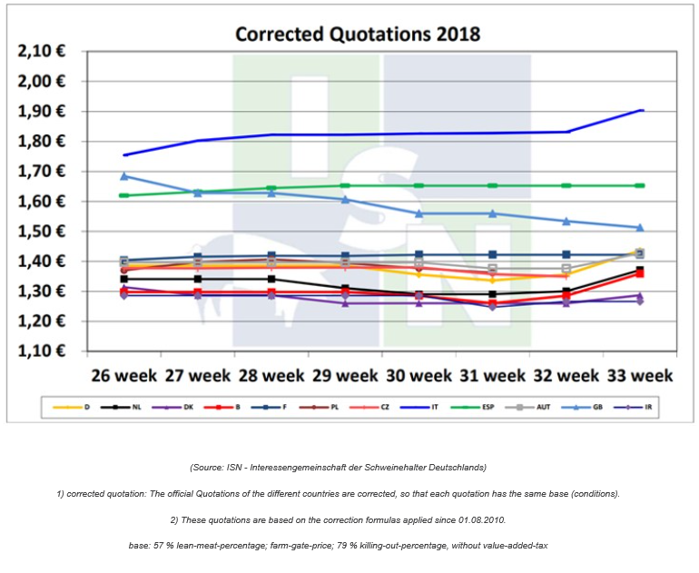 昨天,德國(guó)豬價(jià)上漲8歐分,荷蘭、比利時(shí)和奧地利的豬價(jià)也有比較明顯的上漲。丹麥小幅上漲3歐分。4周前,盡管待宰活豬數(shù)量缺少,德國(guó)豬價(jià)依然受屠企壓價(jià)壓力很大。
