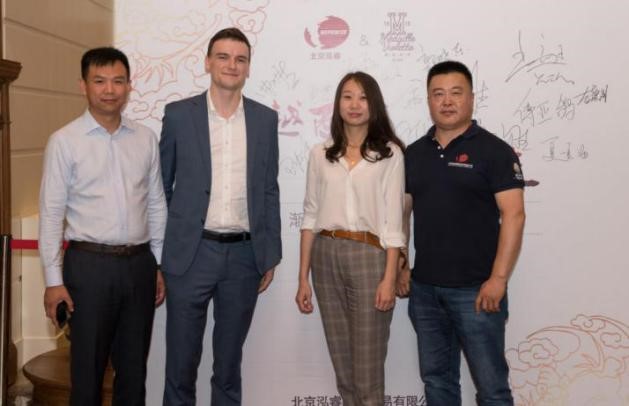 從右至左為:北京泓睿董事長孫永利先生、美國肉類出口協(xié)會王恬女士、愛爾蘭食品局蘇禮文先生、北京泓睿副總經(jīng)理石磊先生