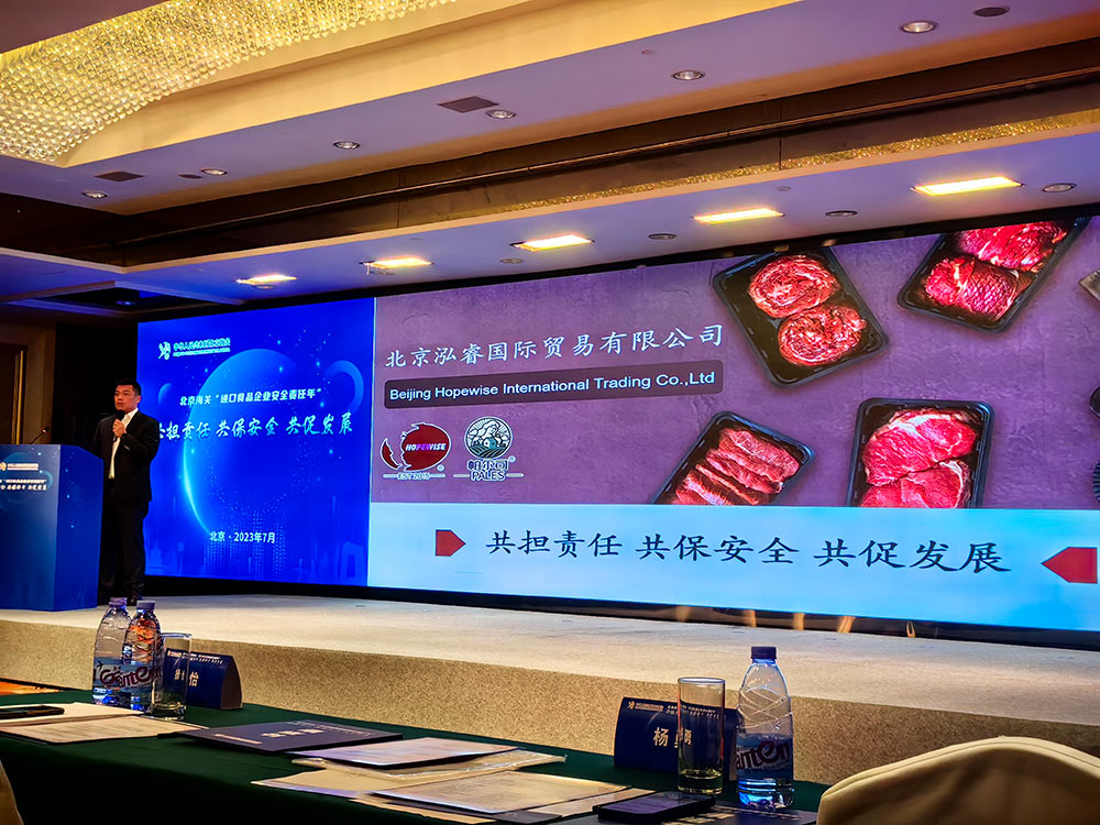 北京泓睿國(guó)際貿(mào)易有限公司總經(jīng)理?xiàng)钣伦鳛槠髽I(yè)代表發(fā)言,楊勇表示:北京泓睿國(guó)際貿(mào)易有限公司,是一家專注于全球優(yōu)質(zhì)肉品進(jìn)口、加工、分銷、新零售全鏈條解決方案供應(yīng)商,公司業(yè)務(wù)涉及豬、牛、禽肉三大品類。結(jié)合中國(guó)肉類食品、餐飲、新零售等行業(yè)發(fā)展需求,我司建立了全新的肉類食品加工基地,采用先進(jìn)的設(shè)備,實(shí)現(xiàn)自動(dòng)化生產(chǎn),可提供安全標(biāo)準(zhǔn)、品質(zhì)穩(wěn)定的定制化進(jìn)口肉品解決方案。