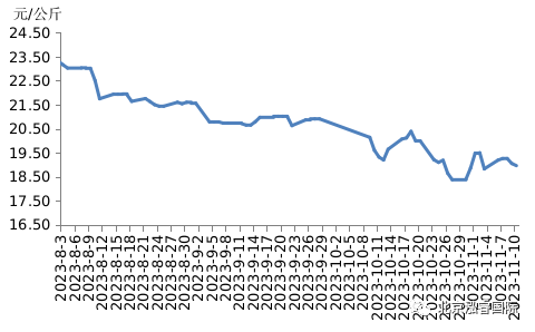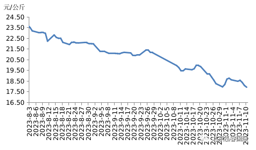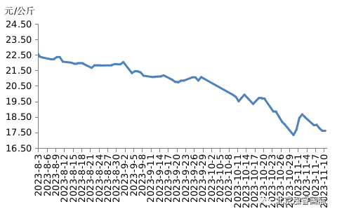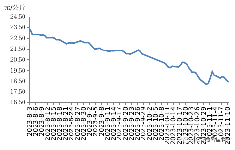 據(jù)農(nóng)業(yè)農(nóng)村部信息中心和山東卓創(chuàng)資訊股份有限公司聯(lián)合監(jiān)測,2023年第45周(即2023年11月6日-11月10日,以下簡稱本周),16?。ㄖ陛犑校┦萑庑桶讞l豬肉出廠價格總指數(shù)的周平均值為每公斤18.70元,環(huán)比下跌0.3%,同比下跌41.4%,較上周收窄3.6個百分點(diǎn)。