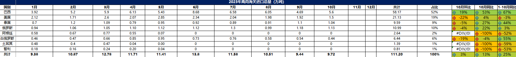 2023 年 10月冷凍牛肉進(jìn)口概況