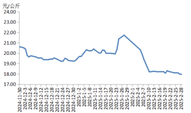 本周,廣東地區(qū)豬肉周均價(jià)為每公斤21.21元,環(huán)比下跌0.4%,同比上漲10.3%,較上周漲幅擴(kuò)大1.7個(gè)百分點(diǎn)。周前期,豬肉市場供需較為平穩(wěn),價(jià)格以穩(wěn)為主;周后期,受周邊市場生豬價(jià)格行情偏弱影響,本地區(qū)散養(yǎng)戶出欄積極提升,疊加豬肉消費(fèi)疲軟,經(jīng)銷商多壓價(jià)收購,帶動(dòng)豬肉價(jià)格微跌。