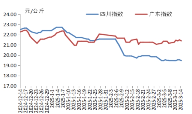 本周,四川地區(qū)豬肉周均價(jià)為每公斤19.51元,環(huán)比上漲0.1%,同比上漲4.2%,較上周漲幅收窄0.2個(gè)百分點(diǎn)。周前中期,受北方市場(chǎng)漲價(jià)情緒影響,川內(nèi)散養(yǎng)戶和規(guī)模養(yǎng)殖場(chǎng)壓欄惜售,加之屠宰企業(yè)將豬肉外調(diào)出省數(shù)量增多,帶動(dòng)豬肉價(jià)格微漲;周后期,豬肉消費(fèi)疲軟,價(jià)格小幅下跌??傮w看,本周四川地區(qū)豬肉周均價(jià)環(huán)比微漲。
